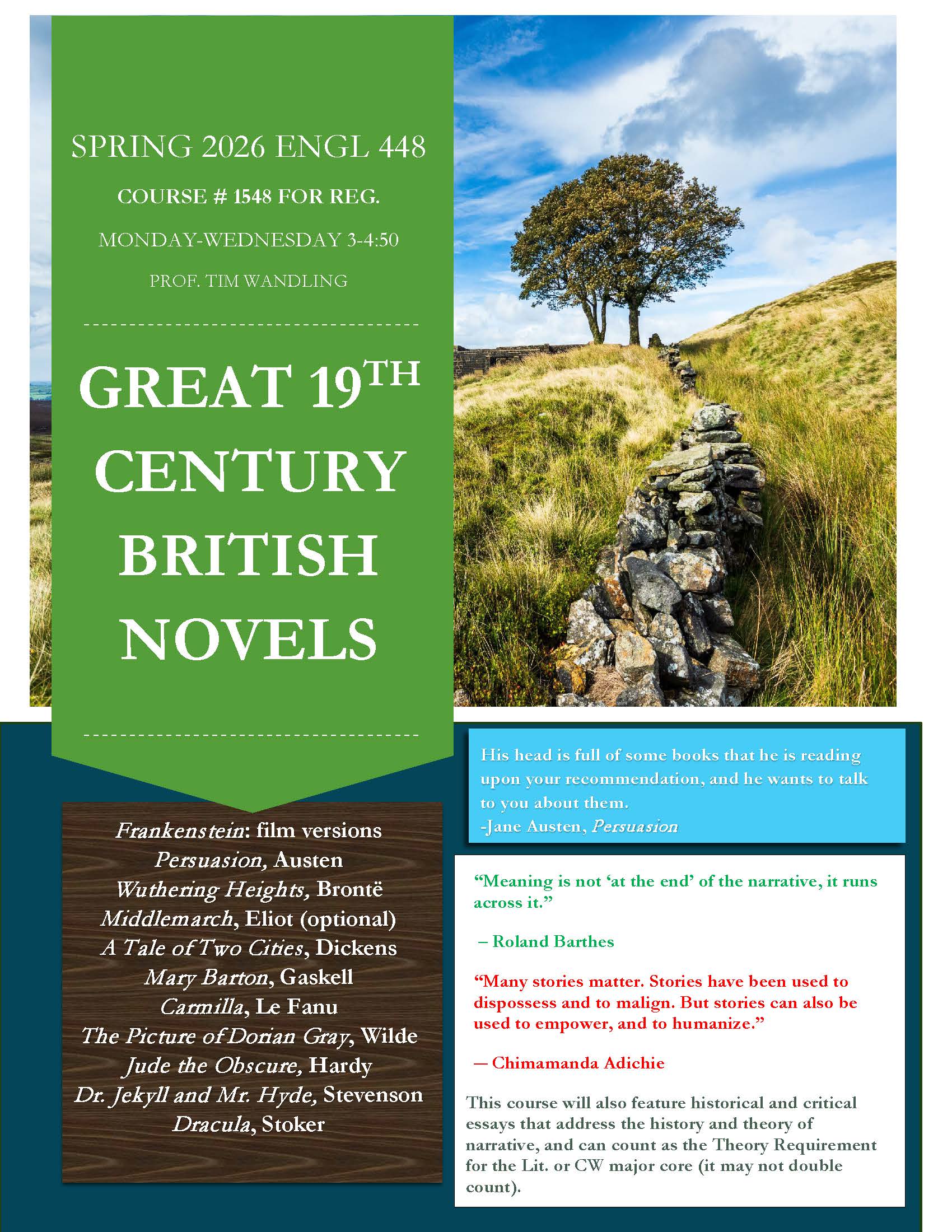 Spring 2026 Class Flyers ENGL 201 ENGL 236 ENGL 368 ENGL 536 ENGL 407 ENGL 418 ENGL 430 ENGL 448 ENGL 485